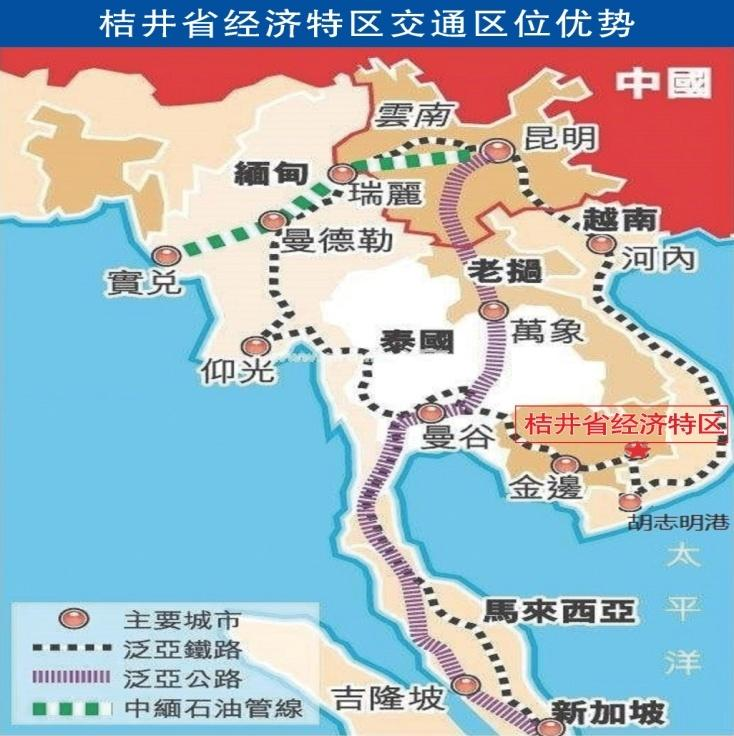桔井經濟特區依托柬埔寨越南邊境國際陸路斯努口岸、胡志明深水港和泛亞鐵路優勢,積極發展經濟作物加工、建材五金、工業制造和倉儲物流產業,將特區建設成為柬埔寨東北部對接中國-東盟10+5零關稅大市場的重要平臺。