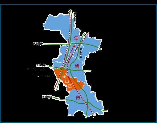博山是山東省地理坐標中心點,有“齊魯之心”美譽,地理位置優越。南北方向205國道、濱萊高速公路貫穿境內 ,張博鐵路電氣化改造、沾臨高速正在建設中,濱臨高鐵即將開工建設;東西方向濟青高速、濟濰高速、濟青南線與博山相鄰而過。