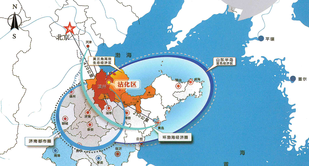 沾化區位于渤海灣南岸,地處黃河三角洲高效生態經濟區、山東半島藍色經濟區兩個國家戰略區域和濟南省會城市群經濟圈、環渤海經濟圈“兩區兩圈”的疊加地帶,是東海上北大門、對接京津冀協同發展的“前沿陣地”。