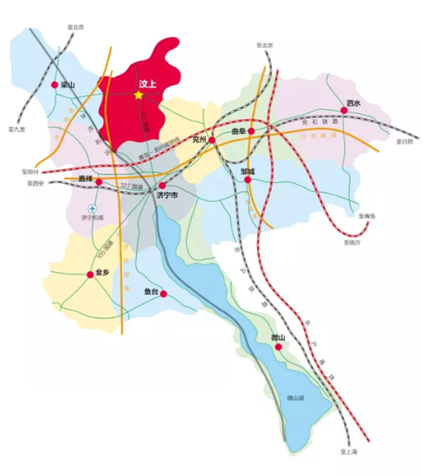 汶上處于京津冀、環渤海、長三角經濟圈的中間地帶,交通發達,物流系統完善,周邊地區是中國經濟最為活躍的區域,擁有最為廣闊的市場空間。目前,汶上已形成快捷便利的立體化交通網絡。汶上東距京滬鐵路兗州站30公里,距京滬高鐵曲阜東站50公里,西距京九鐵路梁山站40公里,南距兗菏鐵路濟寧站35公里。由曲阜高鐵東站乘坐高鐵2小時內可到達北京、天津、青島、南京等城市,3小時到達無錫、蘇州、上海、杭州等城市。日蘭高速、濟廣高速、濟徐高速三條高速公路穿越縣境,有濟徐高速汶上西、汶上南,日東高速濟寧北3個高速出入口,105國道縱貫南北??h城距濟南機場140公里,距濟寧機場40公里。距青島港350公里,距日照港230公里,距京杭大運河濟寧碼頭40公里、汶上南旺碼頭20公里。