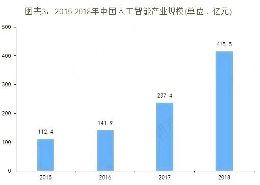 在政策和技術(shù)的推動下,中國人工智能產(chǎn)業(yè)發(fā)展迅速。跟據(jù)中國信通院數(shù)據(jù),2015年到2018年中國人工智能產(chǎn)業(yè)規(guī)模復(fù)合平均增長率為54.6%,高于全球平均水平(約36%)。2018年,中國人工智能產(chǎn)業(yè)市場規(guī)模已達到415.5億元。其中,企業(yè)技術(shù)集成與方案提供、關(guān)鍵技術(shù)研發(fā)和應(yīng)用平臺兩個應(yīng)用領(lǐng)域據(jù)發(fā)展火熱。