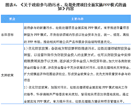 污水治理也一直是政府部門重點關注的環境問題。2017年,財政部、住房城鄉建設部、農業部、環境保護部聯合印發《關于政府參與的污水、垃圾處理項目全面實施PPP模式的通知》,《通知》指出:為促進污水、垃圾處理行業健康發展,在污水、垃圾處理領域全方位引入市場機制,政府參與的新建污水、垃圾處理項目全面實施PPP模式。