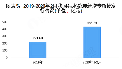 數據顯示,2020年1-2月,我國政府在污水治理領域發行的專項債規模為435.24億元,已超過2019年全年的發行規模。可見,在未來幾年,污水處理行業的市場化進程將進一步加快。