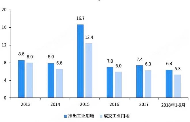 2018年1-9月,全國300城共推出工業用地6.4億平方米,成交工業用地5.3億平方米,同比分別增長33.7%和31.0%。土地用地推動力度的增加,為產業地產的發展提供了想象空間。