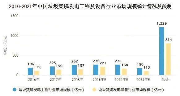 根據(jù)對光大國際、海螺創(chuàng)業(yè)、上海環(huán)境、偉明環(huán)保、綠色動力等12家垃圾發(fā)電上市公司運營項目投資額的測算,得到2016-2019年垃圾發(fā)電項目單位投資成本由54萬元/(噸/日)提高至55萬元/(噸/日),假設2020年單位投資成本小幅提升至56萬元/(噸/日);考慮典型的垃圾發(fā)電項目投資結構,工程土建、工程安裝、設備以及其他分別占比25%、13%、38%、24%,同時假設垃圾焚燒發(fā)電項目建設周期為18個月,T年投運的項目在T-2/T-1/T年的建設期分別為2.5/10/5.5個月,則2026-2021年間垃圾發(fā)電總工程及設備市場規(guī)模分別達到1229億元和814億元。