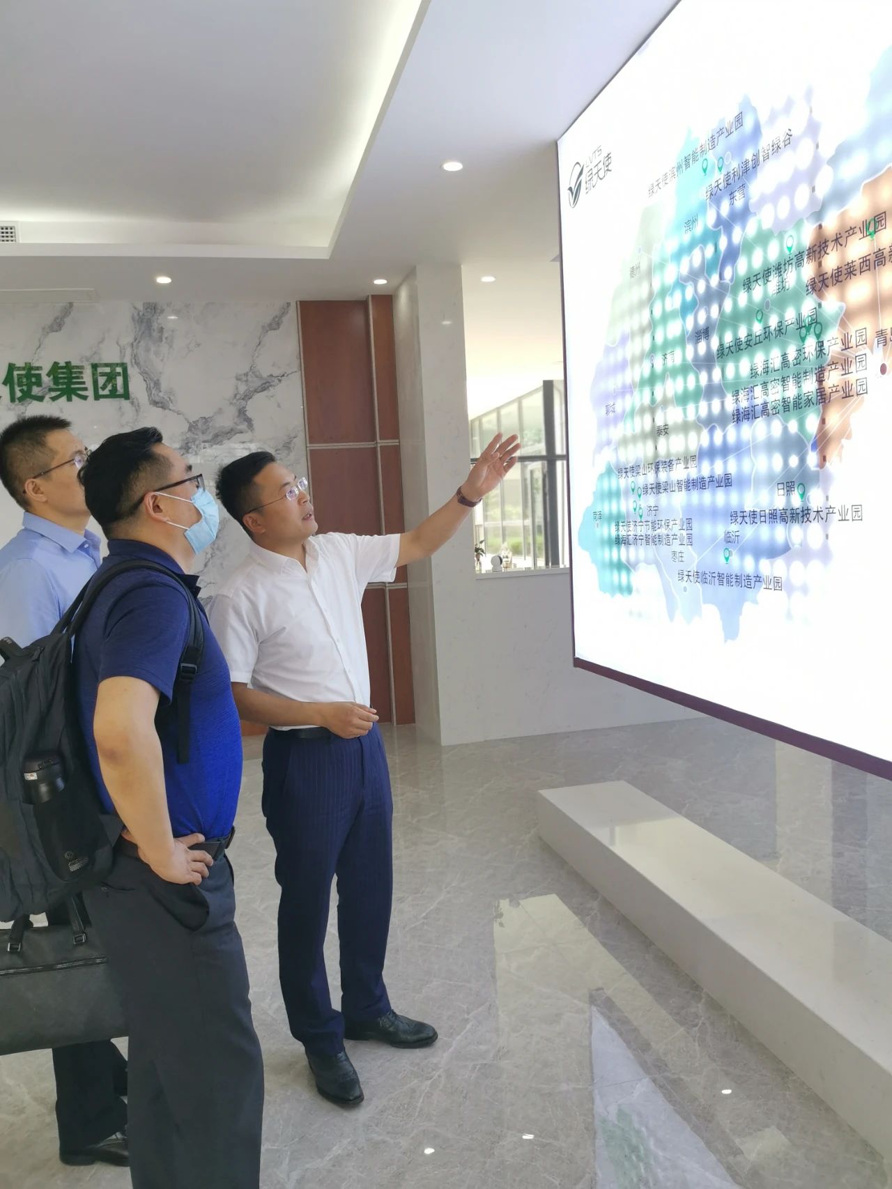 近日,首創光年城(天津)總經理武劍峰、產業招商總監劉彥宏、產業運營總監徐建輝一行來訪綠天使參觀交流,綠天使董事長王瑞強、副總經理陳聰聰、運營經理陳凌云進行了熱情的接待。