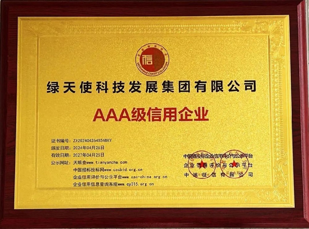 憑借良好的社會信譽(yù)和優(yōu)秀的履約能力,近日綠天使科技發(fā)展集團(tuán)有限公司榮獲企業(yè)信用“AAA級信用企業(yè)”稱號。 企業(yè)信用評價(jià),主要通過對企業(yè)的技術(shù)力量、年?duì)I業(yè)額、行業(yè)排名、企業(yè)業(yè)績、成果質(zhì)量、創(chuàng)新創(chuàng)優(yōu)、履約評價(jià)、行業(yè)貢獻(xiàn)及社會擔(dān)當(dāng)?shù)冗M(jìn)行多維度綜合評價(jià)