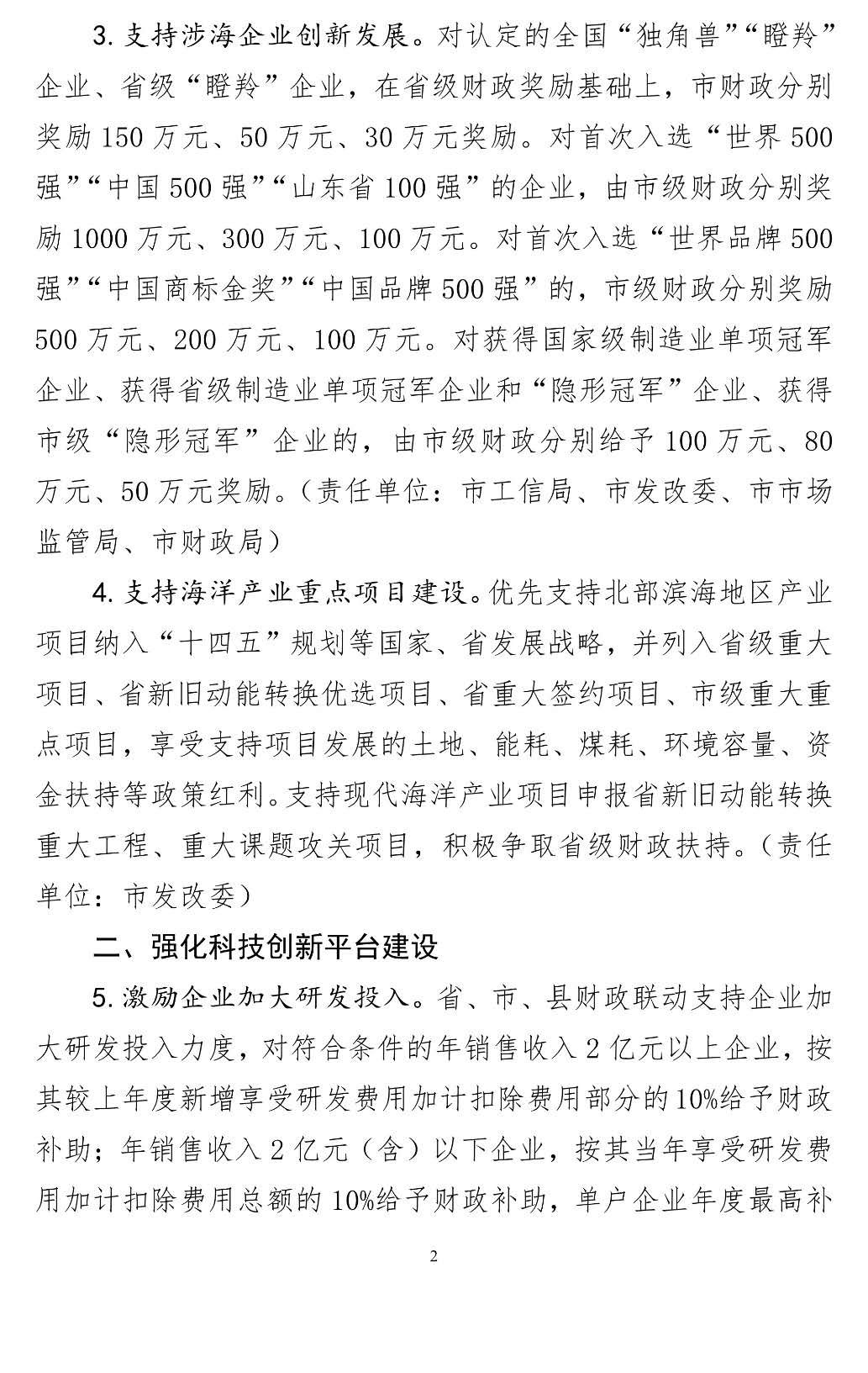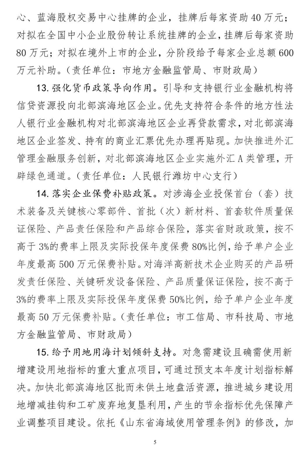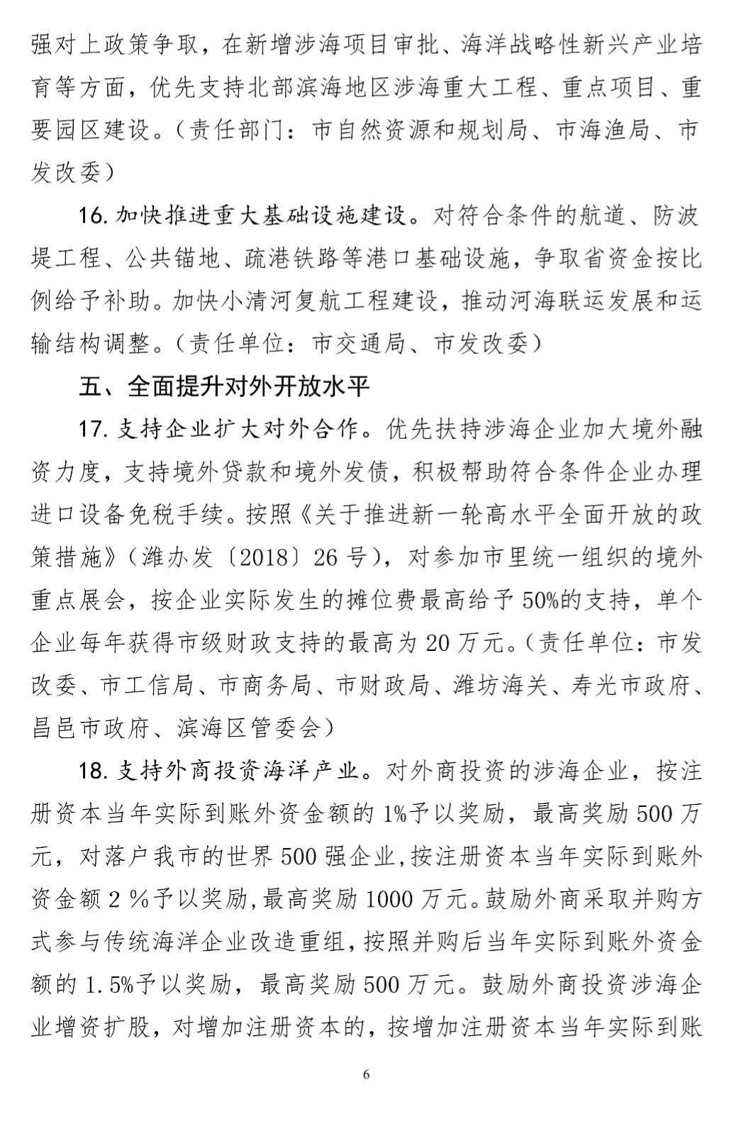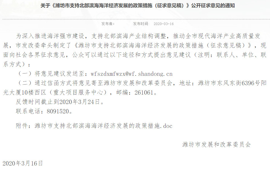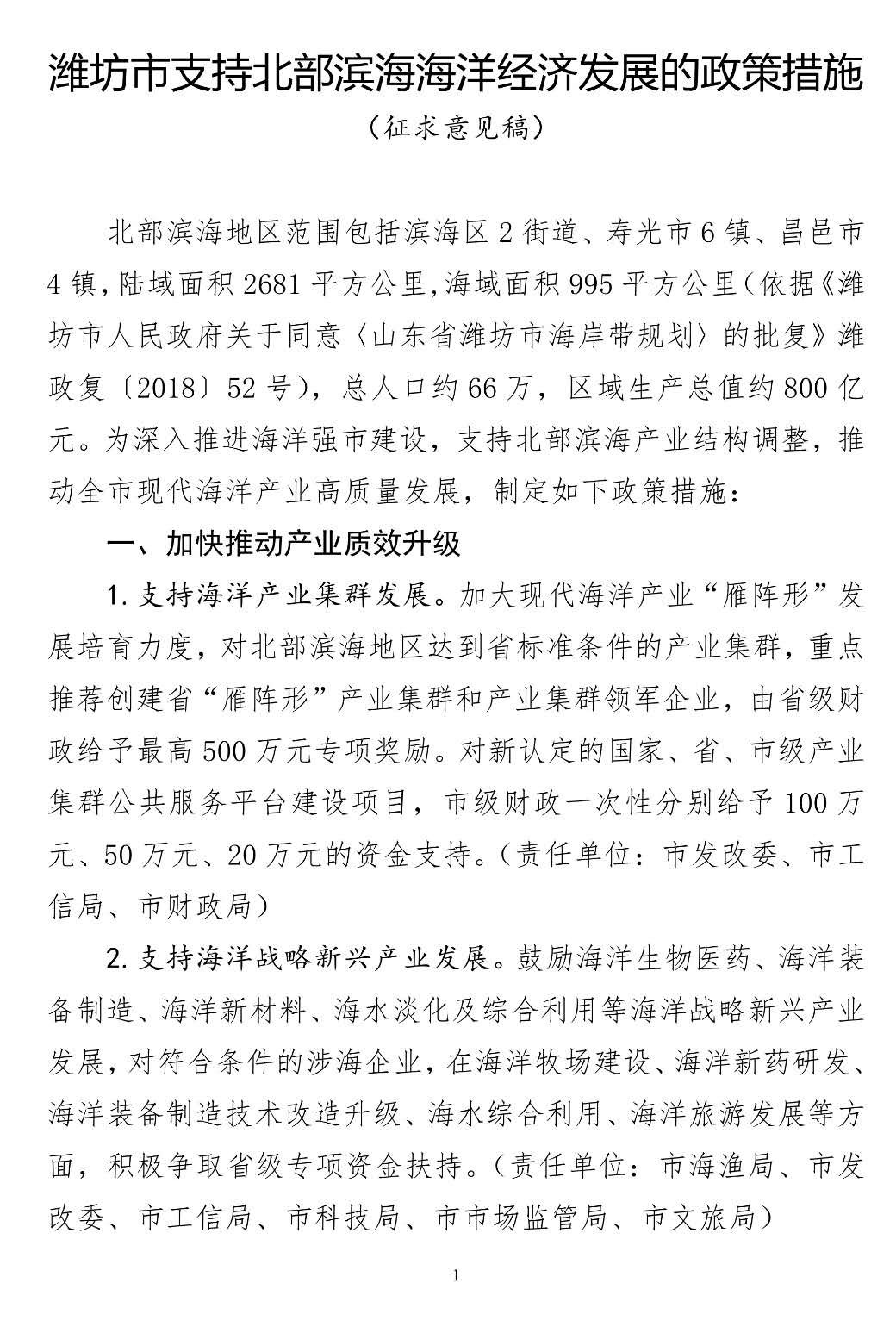 濰坊市支持北部濱海海洋經濟發展的政策措施(征求意見稿)